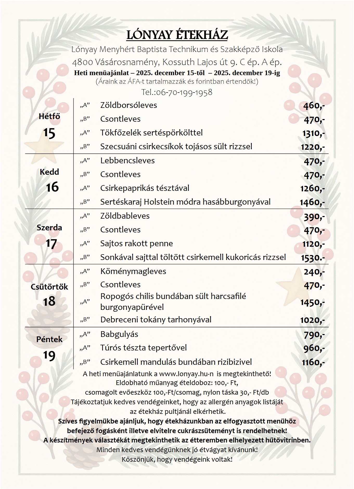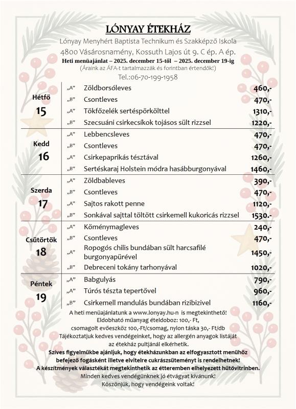 Heti menüajánlat – 2026. január 19-től – 2026- január 23-ig